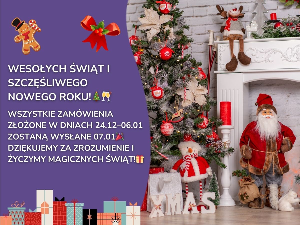 Wszystkie zamówienia złożone w dniach od 24 grudnia do 6 stycznia zaczną być realizowane i wysyłane od 7 stycznia.